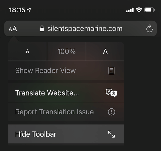 For a better mobile experience, click "Hide Toolbar" in the URL toolbar